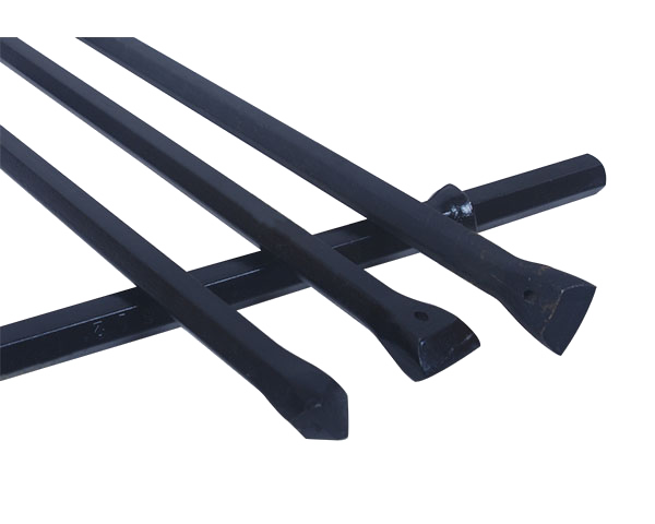 Integral Drill Steel is used by a hand held drill machine in Underground mining and for small hole drilling, equipped with small power rock drills, like air leg rock drills, hand held rock drills, etc. It can reduces the expense of impact energy, improves the drilling speed and efficiency, also it can be used for drilling bore hole diameter from 30mm to 41mm usually. Regarding Integral drill steels,the quality of a steel material and a tungsten carbide is very important to get good drilling performance.